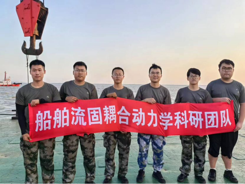 船舶与港口工程学院山东省高等学校青年创新团队——船舶流固耦合动力学科研团队负责人于福临带领团队硕士研究生在海上开展抗冲击试验,为船舶减振降噪与爆炸抗冲击研究提供理论基础。