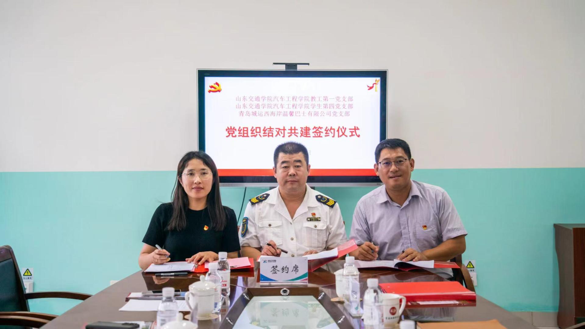 党建引领聚合力。学院教工第一党支部、学生第四党支部与青岛城运西海岸温馨巴士有限公司党支部开展党建共建活动。活动中,各党支部共同开展党建工作座谈会,围绕学生志愿服务、实践教学、课题研究、产学研合作等方面深入交流;学院两个党支部分别与青岛城运西海岸温馨巴士有限公司党支部签订支部共建协议书,在深化校企合作、推动党建业务融合等方面达成共识。