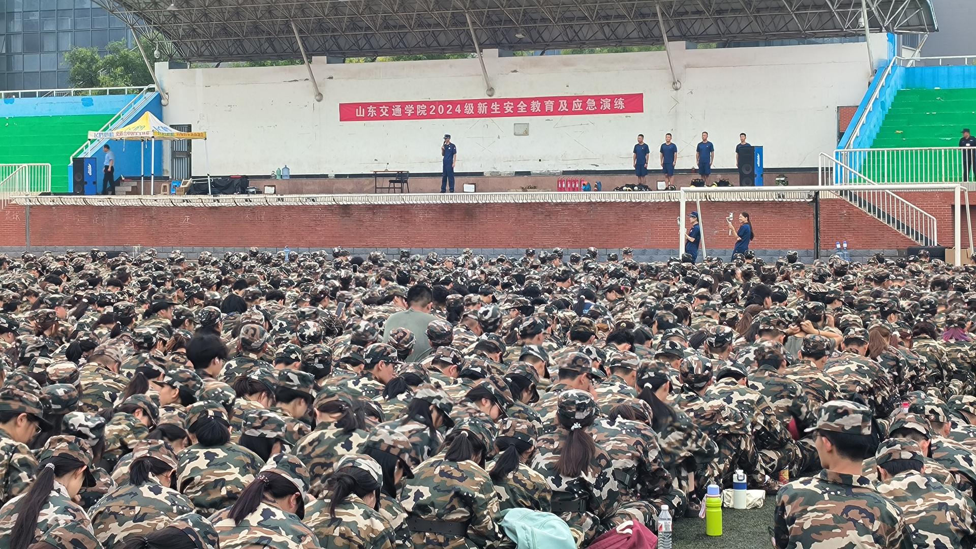 近日,学校学生工作处(人民武装部)、安全管理处联合长清区公安分局、济南市消防救援支队、长清区消防救援大队在长清校区田径场开展2024级新生安全教育及应急演练活动。
