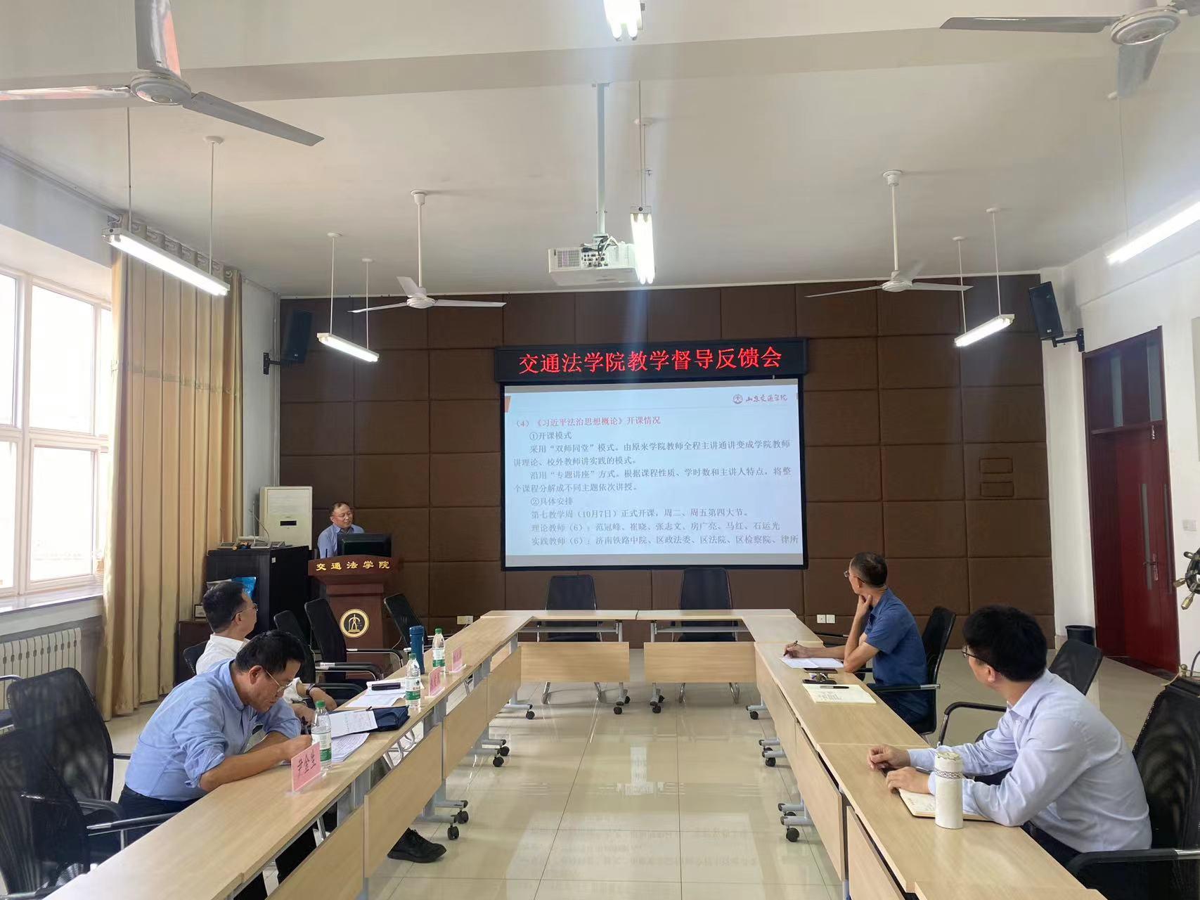 尹金生、朱爱民对交通法学院教学工作开展情况进行点评,表示学院教学工作平稳有序扎实,课堂教学改革理念深入,课堂节奏张弛有度,整体效果良好,但在教学改革攻坚环节及青年教师教育培养方面需要再下功夫,持续发力,推动课堂教学改革取得新成效。