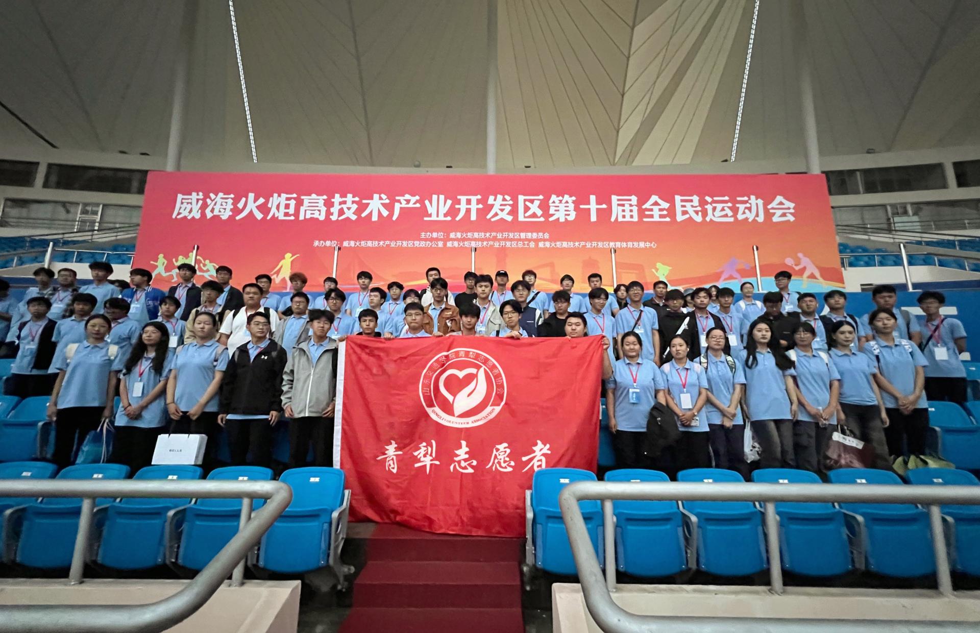 近日,威海火炬高技术产业开发区第十届全民运动会在威海市体育场举行,我校国际商学院青犁志愿者协会的80余名志愿者为活动提供志愿服务。