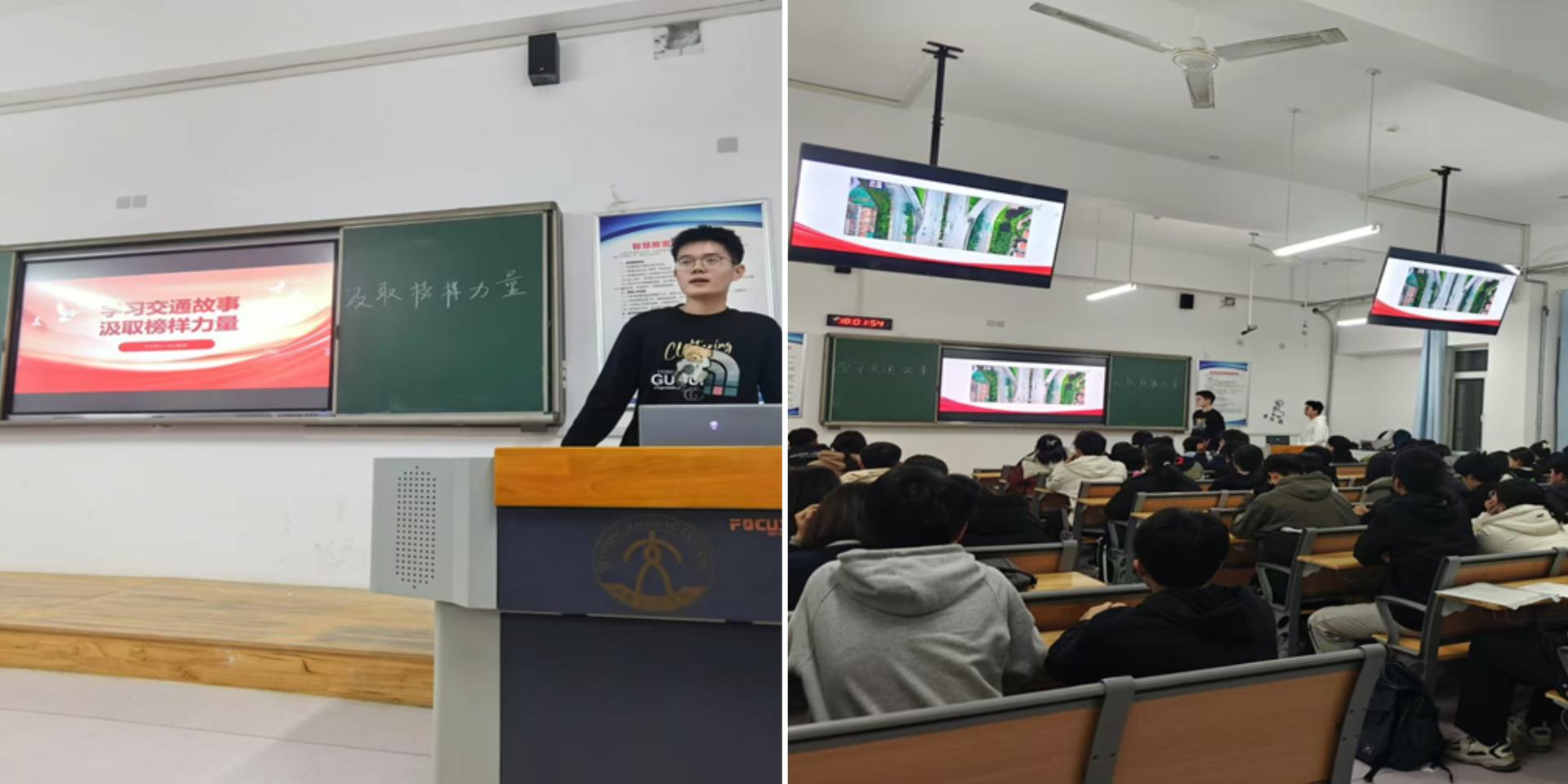信息科学与电气工程学院(人工智能学院)组织开展“学习交通故事,汲取榜样力量”系列宣传活动,通过朋辈力量围绕中国交通发展历程中的榜样人物和报国故事开展宣讲,引导学院青年学生树立“交通报国 强国有我”理想信念,传承弘扬新时代交通精神。活动中,大数据242班吕云松等同学讲述了“中国铁路之父”詹天佑、“行走在公路上的院士”沙庆林的奉献故事,通过讲述老一辈交通人甘于奉献、艰苦奋斗的感人事迹,激励同学们用青春热血书写交通强国建设新篇章。