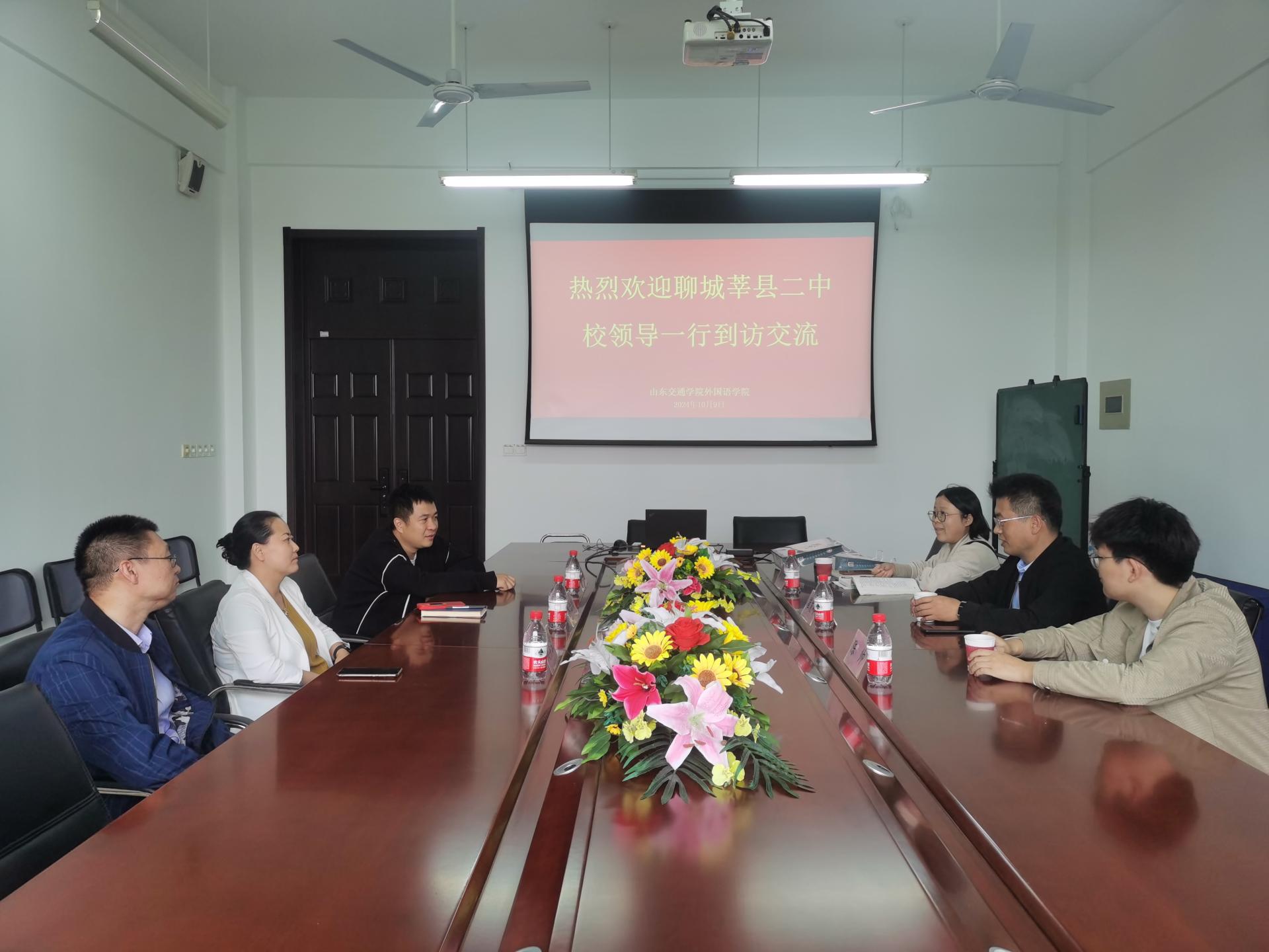 10月9日,聊城市莘县第二中学副校长崔友岭一行3人来我校外国语学院走访交流。外国语学院院长宋岩岩参加活动。