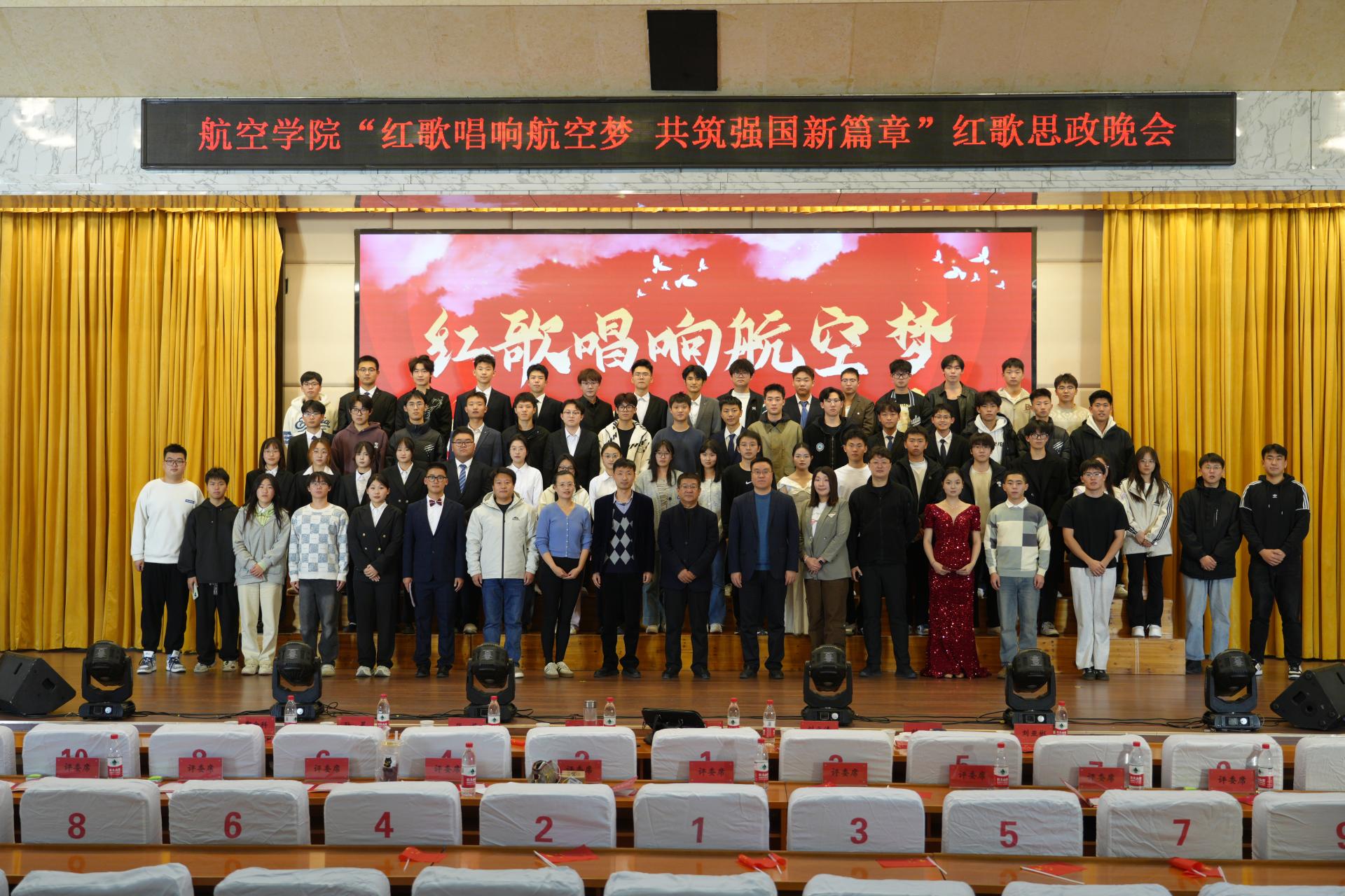 航空学院在长清校区学术报告厅举办“红歌唱响航空梦 共筑强国新篇章”红歌晚会。晚会以我国航空工业发展历程为主线,分为“序篇”“梦想起飞 志在蓝天”“崭新航向 逐梦蓝天”“领航时代 翱翔蓝天”四个篇章,运用合唱、朗诵、小品、话剧等多种形式,在青年学子的动情演绎下,生动展现中国航空人不断砥砺奋进、追求卓越的奋斗历程。