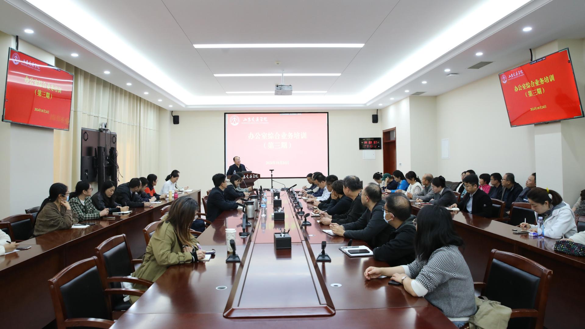 10月24日,学校在长清校区明德楼301会议室举办第三期办公室综合业务培训班,邀请山东师范大学体育学院党委书记、空天信息大学(筹)挂职干部王晓声作专题报告。