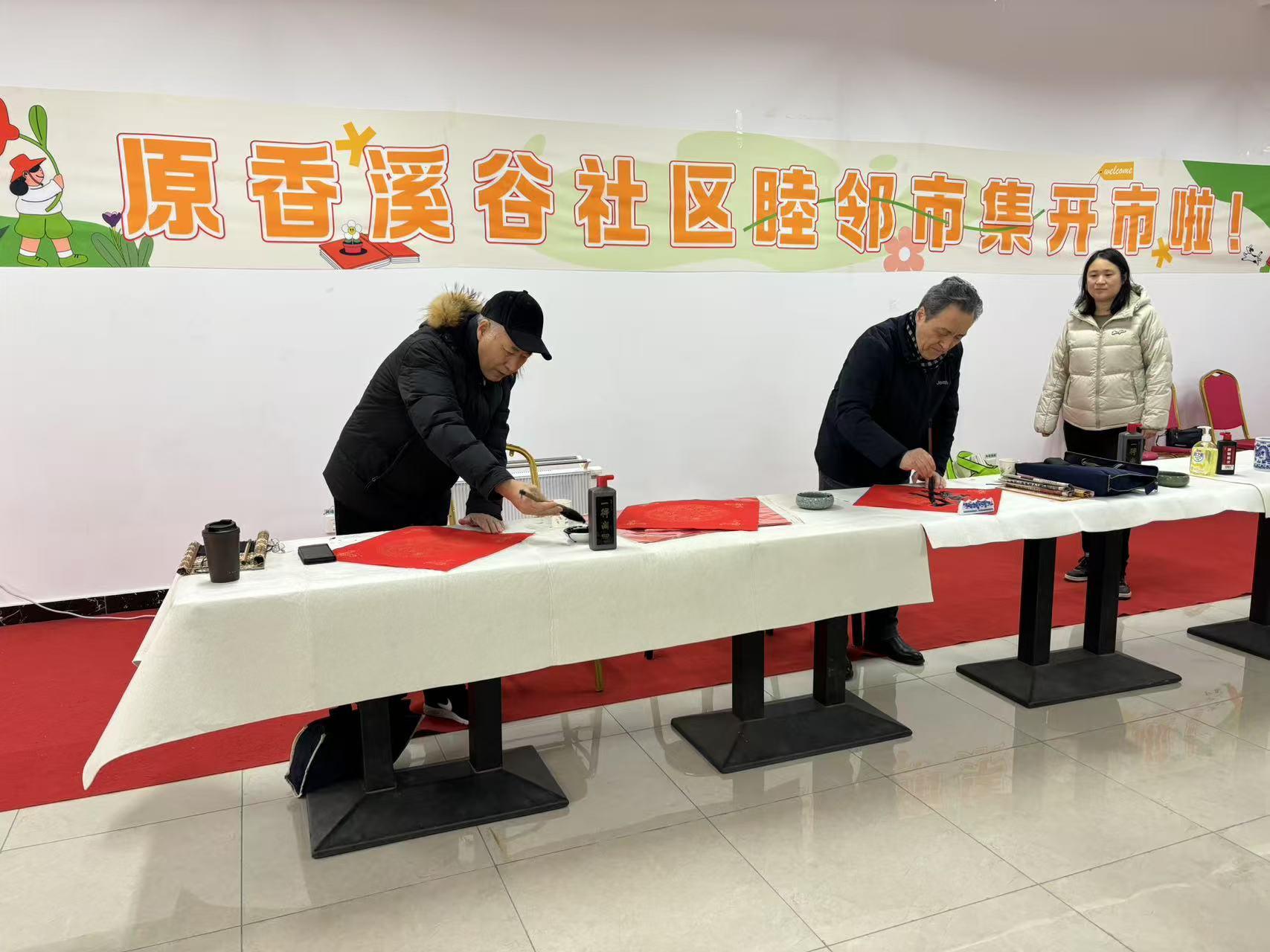 当天,在原香溪谷社区举办的“原香溪谷社区睦邻市集”和“迎新春、写春联、送祝福”活动中,赵中利与刘俊利亲手书写“福”字,受到了社区群众的广泛好评。