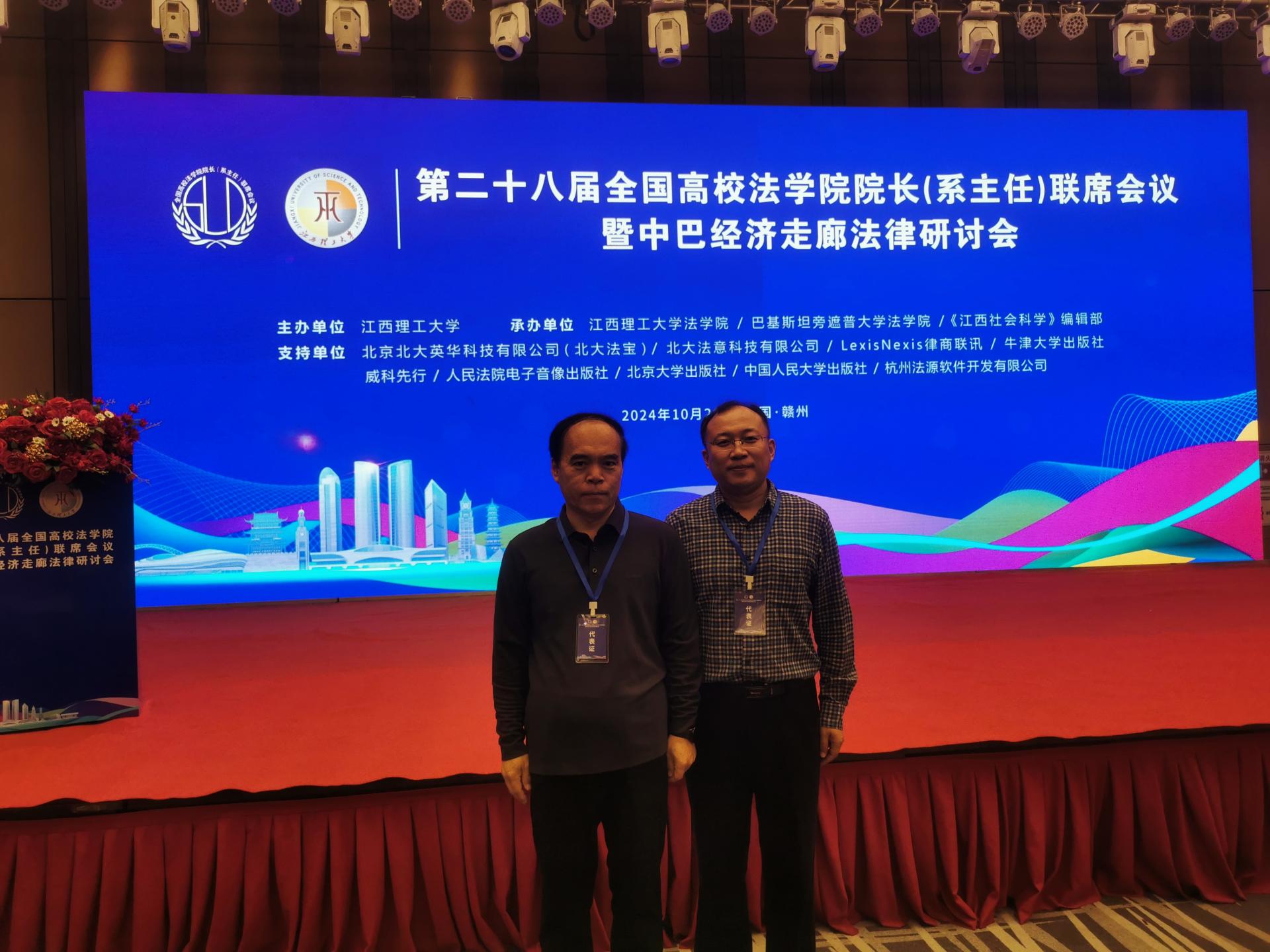 10月26日,第二十八届全国高校法学院院长(系主任)联席会议暨中巴经济走廊法律研讨会在江西省赣州市召开。我校交通法学院院长范冠峰、副院长张志文应邀参会。
