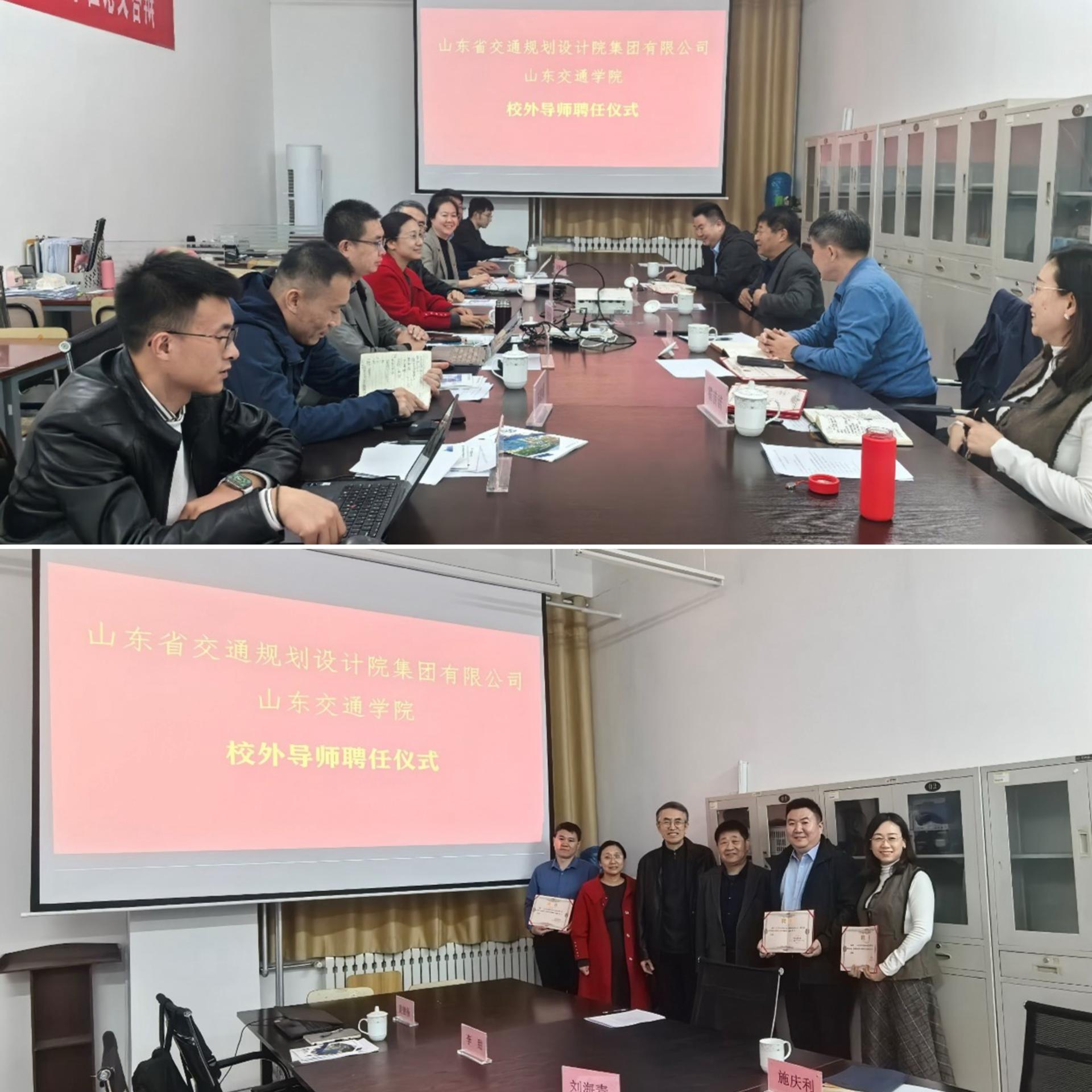 会上,学院举办硕士研究生导师聘任仪式,聘任山东省交通规划设计院集团有限公司崔纪鹏、霍苗苗、蒋波、施庆利、魏代梅为硕士研究生导师并颁发聘书。