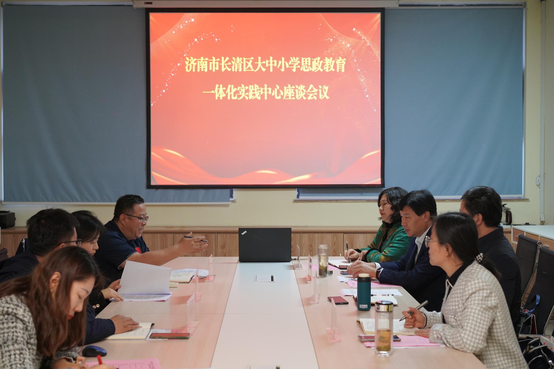 近日,济南市长清区大中小学思政教育一体化实践中心座谈会在我校体育馆A108举行。长清区教育教学研究中心主任刘光顺、长清区招生服务中心负责人刘应阶参加会议,我校学生工作处副处长赵斐娜主持会议。