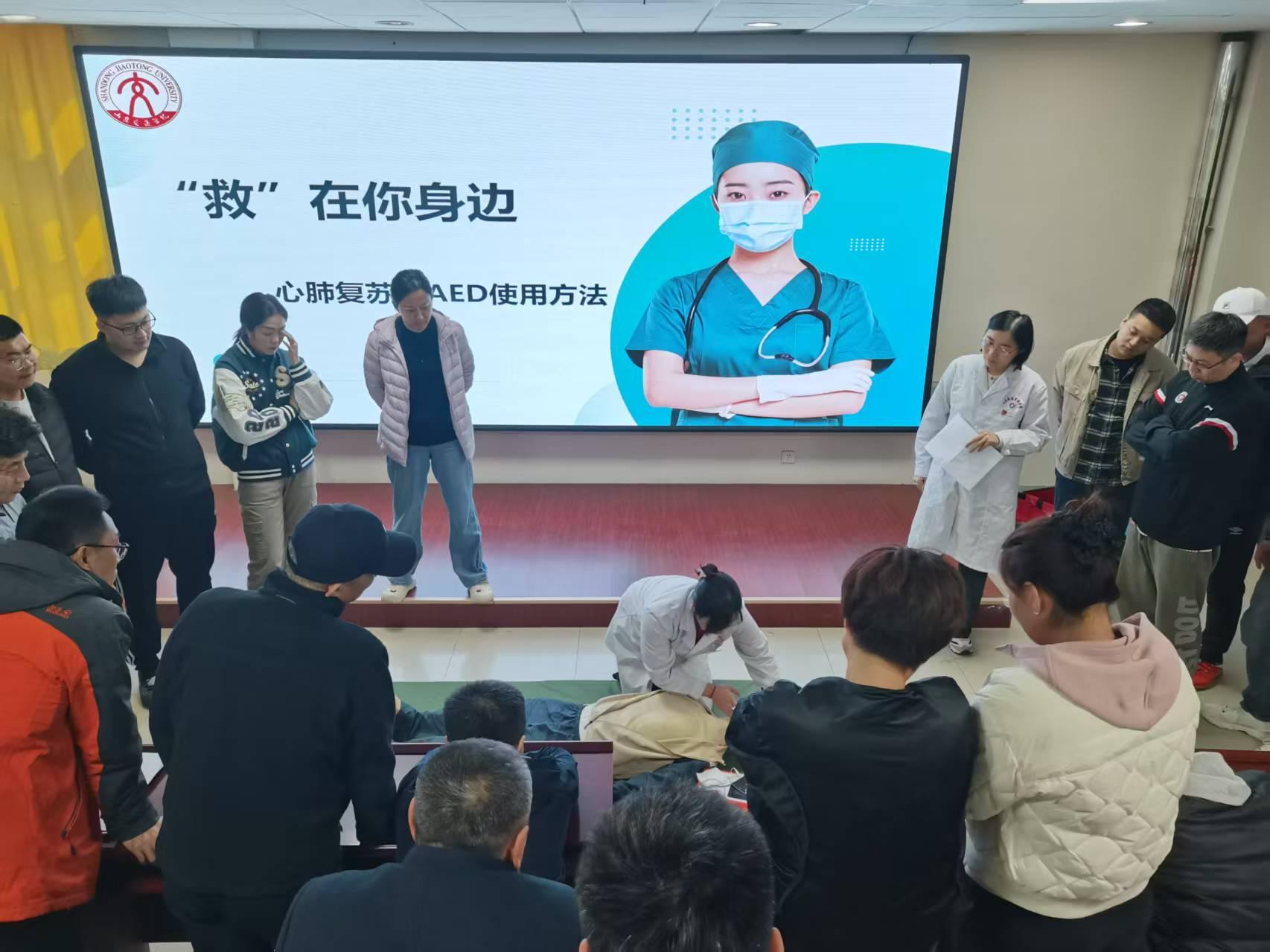 学校医院与体育教学部联合开展“‘救’在你身边”急救技能培训活动。医护人员通过“讲解+演示+实操”相结合,现场教授心肺复苏方法与AED使用技能,普及相关急救知识和急救技能,提升教职工们的急救意识和自救互救能力,增强面对突发事件时的信心与勇气,着力营造安全和谐的校园环境。