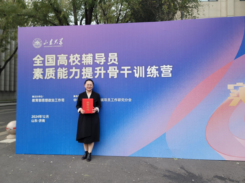 近日,由教育部思想政治工作司主办、中国高等教育学会高校辅导员工作研究分会承办的2024年全国高校辅导员素质能力提升骨干训练营(原辅导员素质能力大赛)在山东大学举行。经山东省教育厅遴选推荐,我校轨道交通学院辅导员郎冰代表山东省参赛,并荣获“优秀风采奖”。