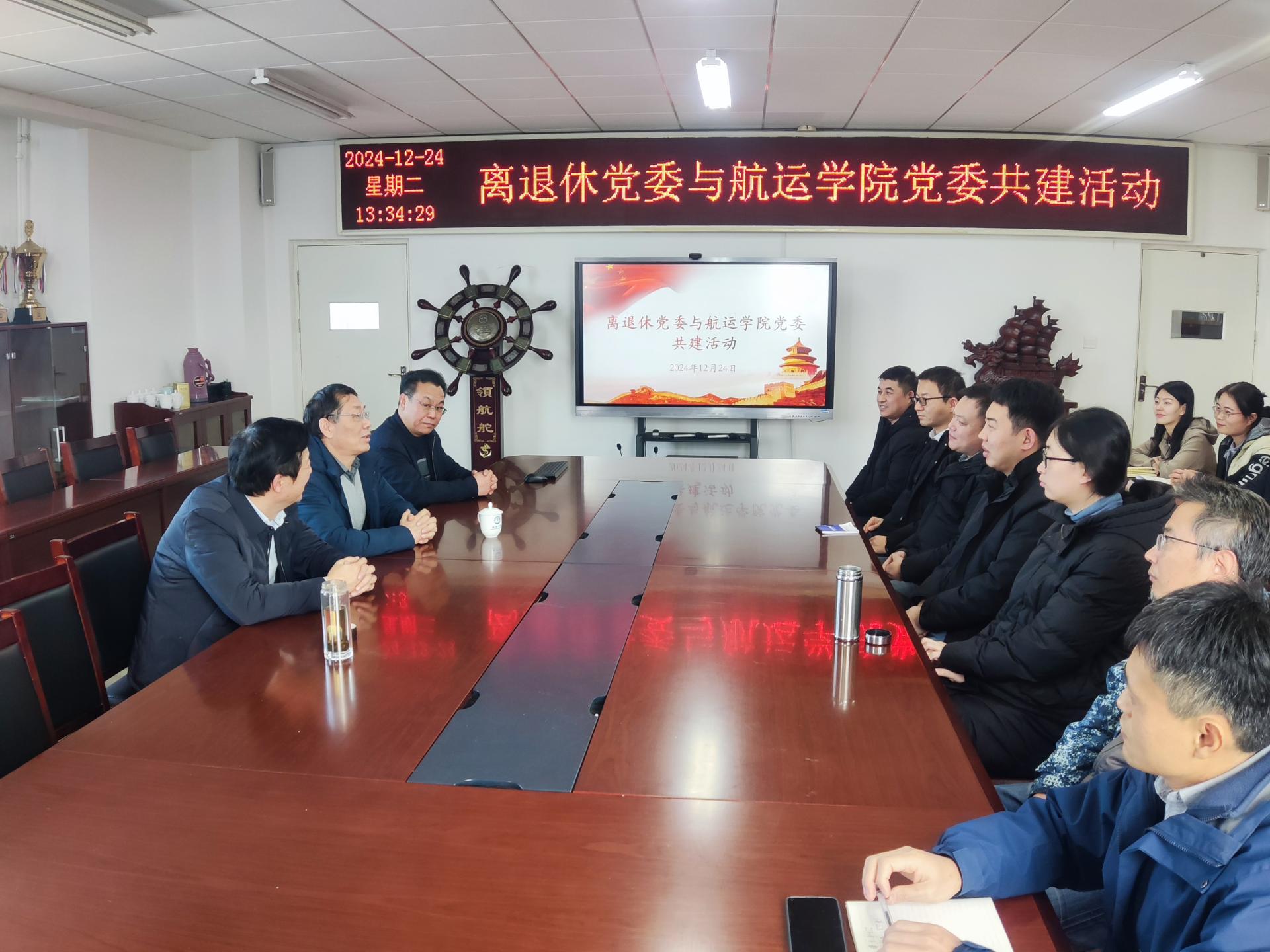 离退休党委与航运学院党委在威海校区开展结对共建活动。航运学院党委书记陈海泳介绍了学院近年来在学科专业建设、人才培养、科研和社会服务、招生就业等方面取得成绩,他希望通过此次共建活动,进一步增进学院教师知校、爱校情怀,激发教师荣校、兴校责任感和使命感;王洪鹏介绍了离退休党委和关工委工作的基本情况,希望通过加强党建工作交流合作,共同探索高质量发展新模式;娄进举深情回顾了学校师生共同奋斗的光辉岁月,分享了自己的工作体会,鼓励青年教师和全体辅导员要增强爱校荣校意识和主人翁责任感,努力拼搏、积极奋进,为推动学校事业高质量发展贡献青春力量。