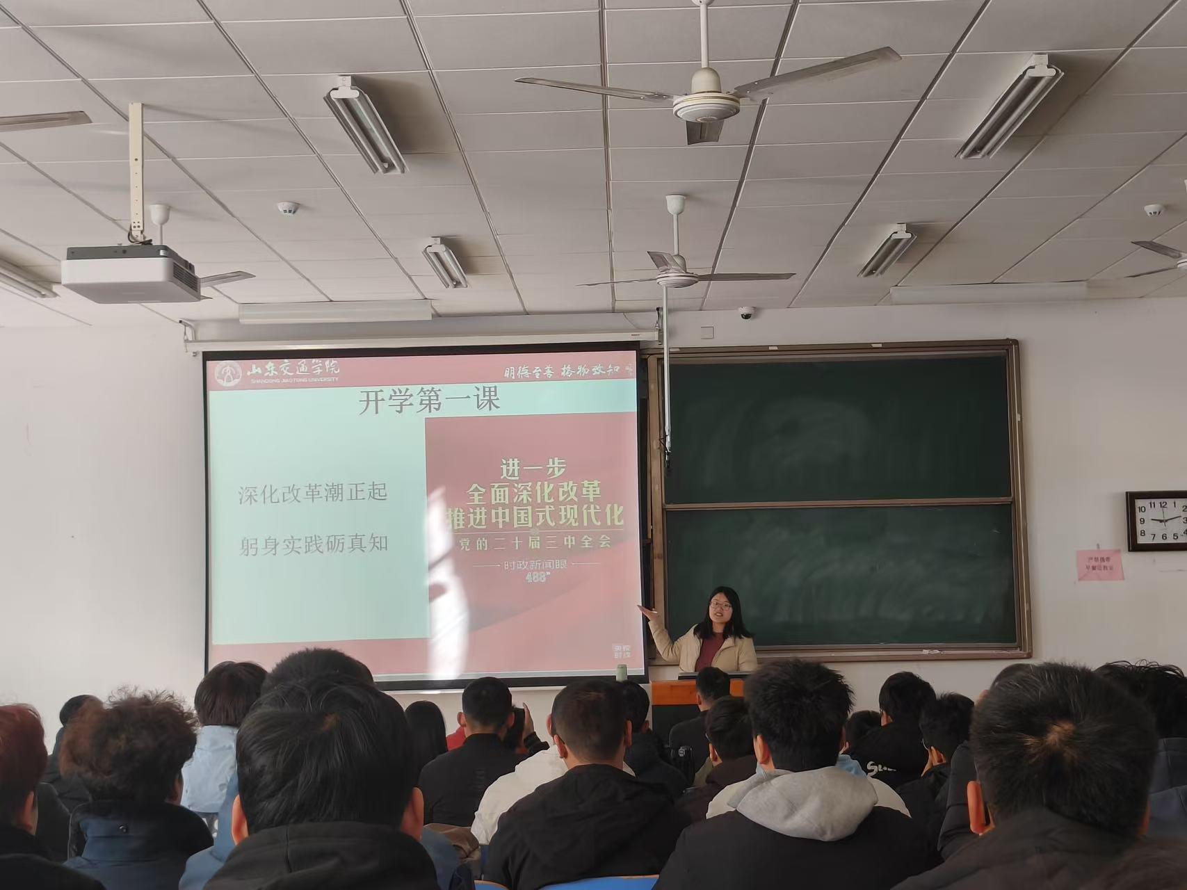 基础教学部以“深化改革潮正起,躬身实践砺新知”为主题,为威海校区140余个班级、4000余位同学上好“开学第一课”。思政课教师们系统梳理了改革开放以来党的历届三中全会内容,围绕深刻认识和把握党的二十届三中全会精神的丰富内涵和重大意义等方面进行详细讲解,引导青年学子感党恩、听党话、跟党走,树立改革创新、拼搏奉献的理想信念,脚踏实地、善作善成,以更加坚定的步伐、更加饱满的热情、更加奋进的姿态为中国式现代化建设贡献青春力量。