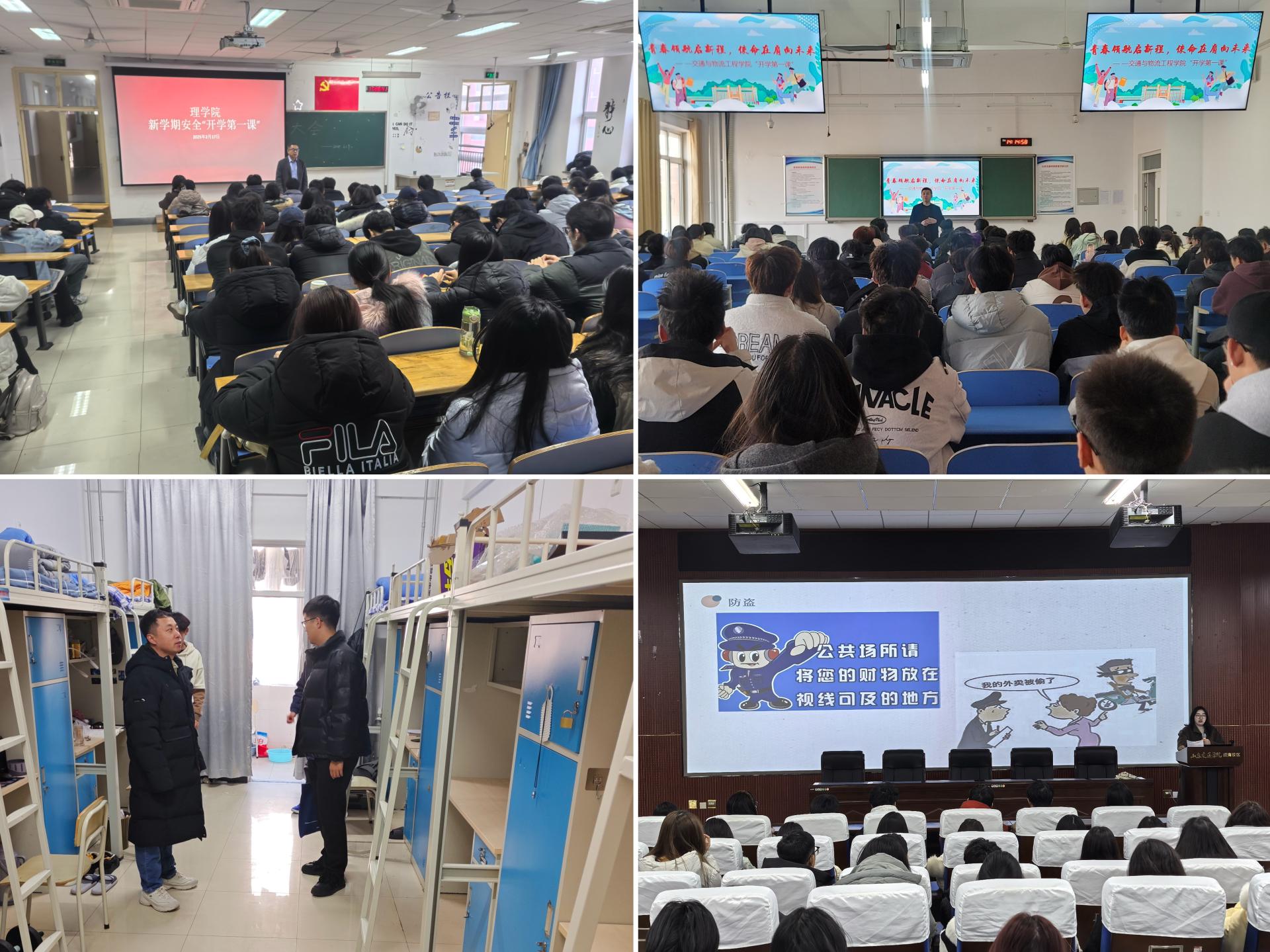 工程机械学院、船舶与港口工程学院、理学院、交通与物流工程学院、国际商学院、航空学院、轨道交通学院及交通法学院开展2025年春季学期“开学第一课”。学院学生工作队伍以安全、思政为主题,围绕总体国家安全观、安全意识、行为养成、个人规划等方面,通过开展主题班会、走进学生宿舍等形式,引导全体同学立足新学期新目标,强化安全意识、增强责任担当,立“交通报国”鸿鹄志,持“拼搏不止”奋斗力,做“勤学笃行”奋斗者,努力成为有理想、敢担当、能吃苦、肯奋斗的新时代好青年。
