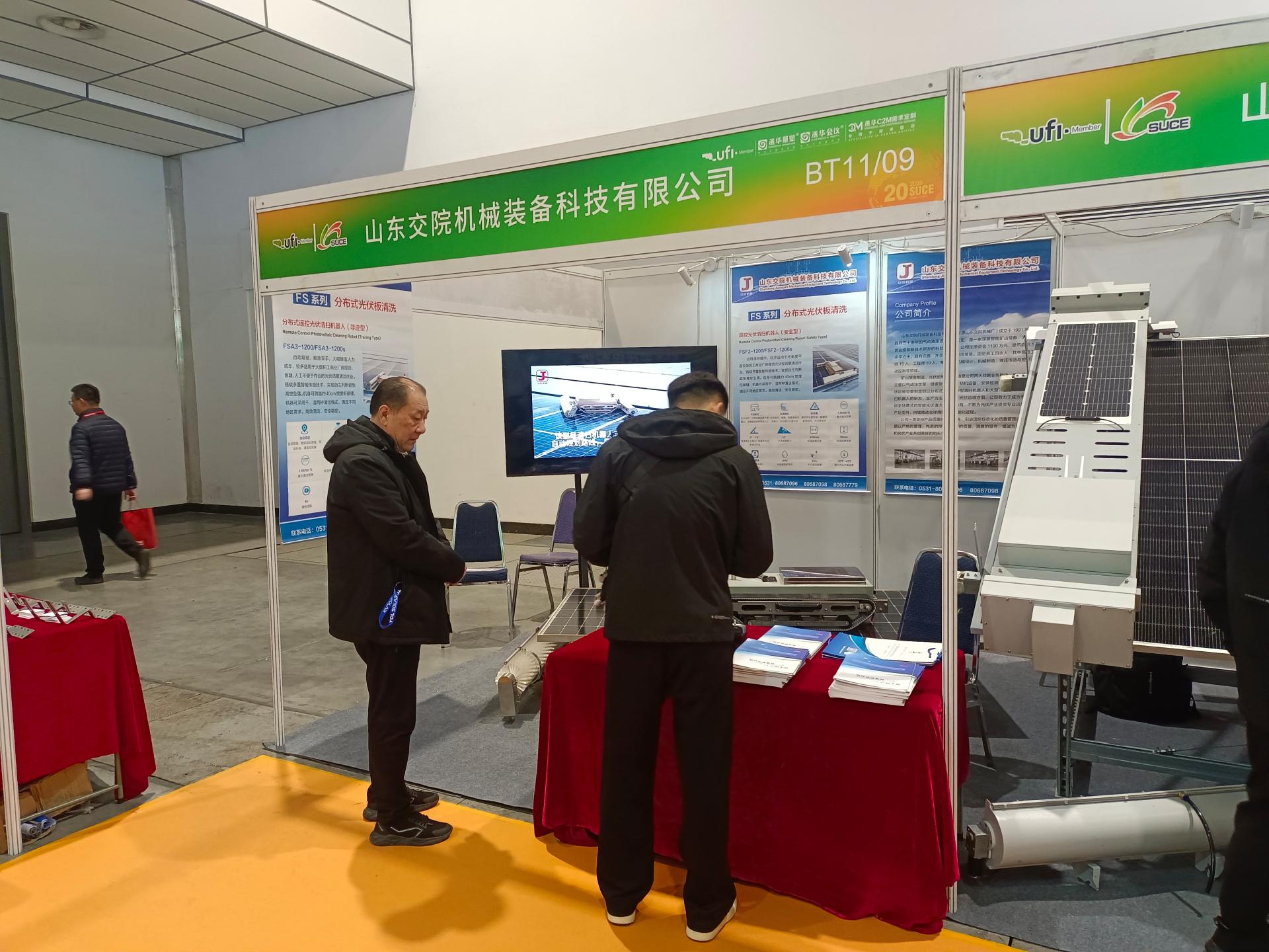 3月5日,第20届中国(济南)国际太阳能利用大会暨展览会在山东国际会展中心盛大开幕。我校校属企业山东交院机械装备科技有限公司携自主研发的光伏智能清扫机器人系列产品精彩亮相,展示光伏电站智慧运维解决方案的创新成果。