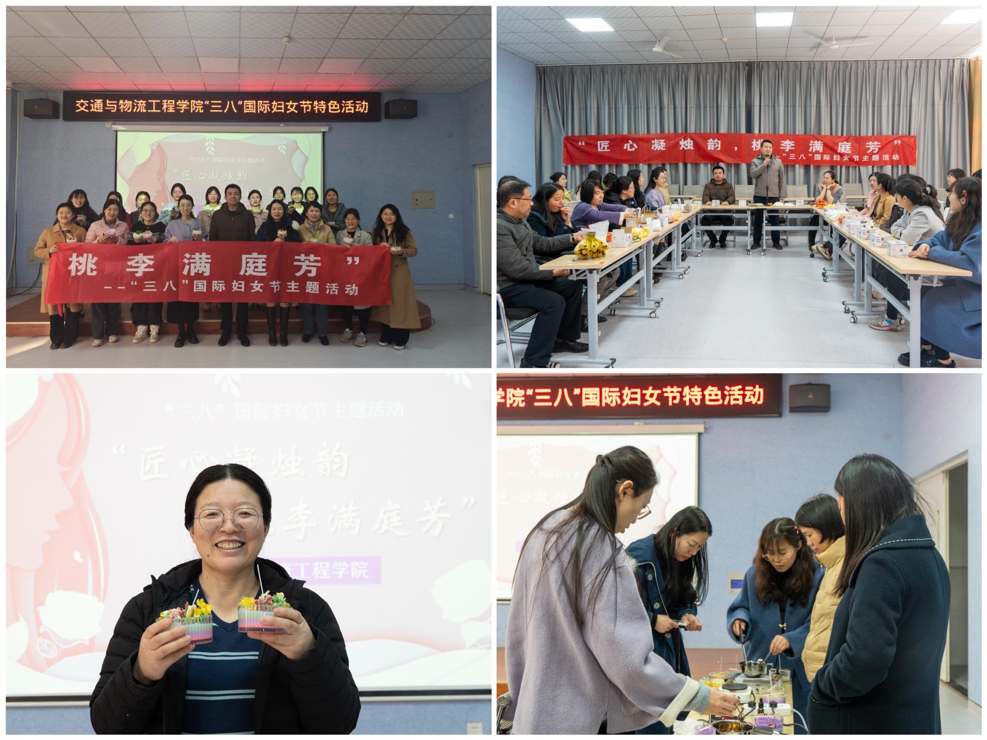 交通与物流工程学院举办“匠心凝烛韵,桃李满庭芳”活动。学院党委书记李保宏向全体女教职工献上真挚的节日祝福,他高度赞扬了女教职工们巾帼不让须眉之姿,用坚毅与卓越的态度,在教学、科研、管理等多领域取得亮眼的成绩,为推动学院发展提供强劲动力。女教职工围绕“快乐工作、乐享生活、关注健康”积极开展交流分享,畅谈对生活和工作的独到感悟,并亲手制作香薰蜡烛,为自己送上一份饱含心意的节日祝福。