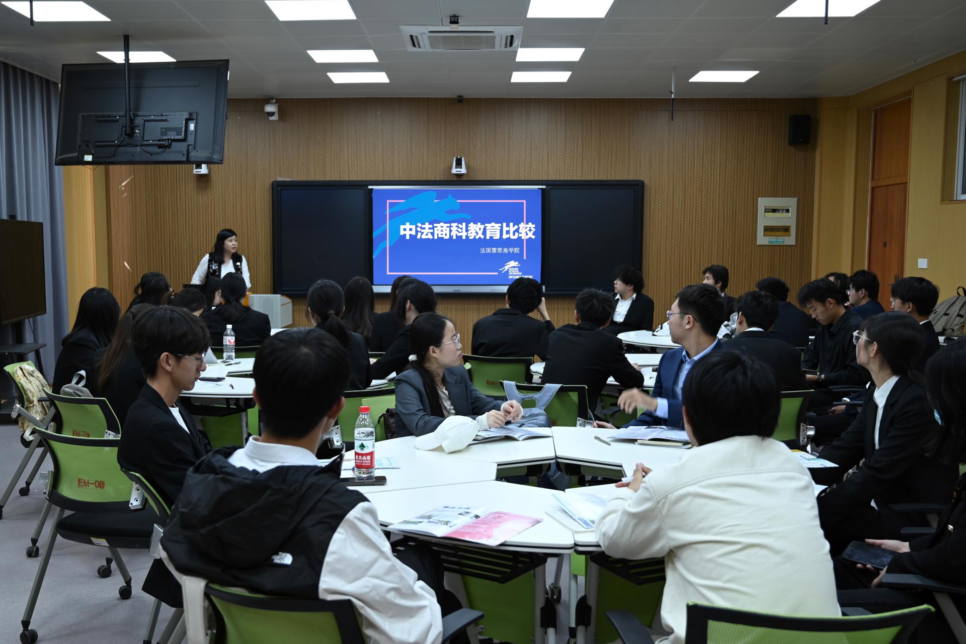 当天,陈璐在长清校区1A203智慧教室作双边学术交流讲座,她以《中法商科教育比较》为题,从学科、专业、实习实践等角度,分析了中法两国商科教育的不同特点。