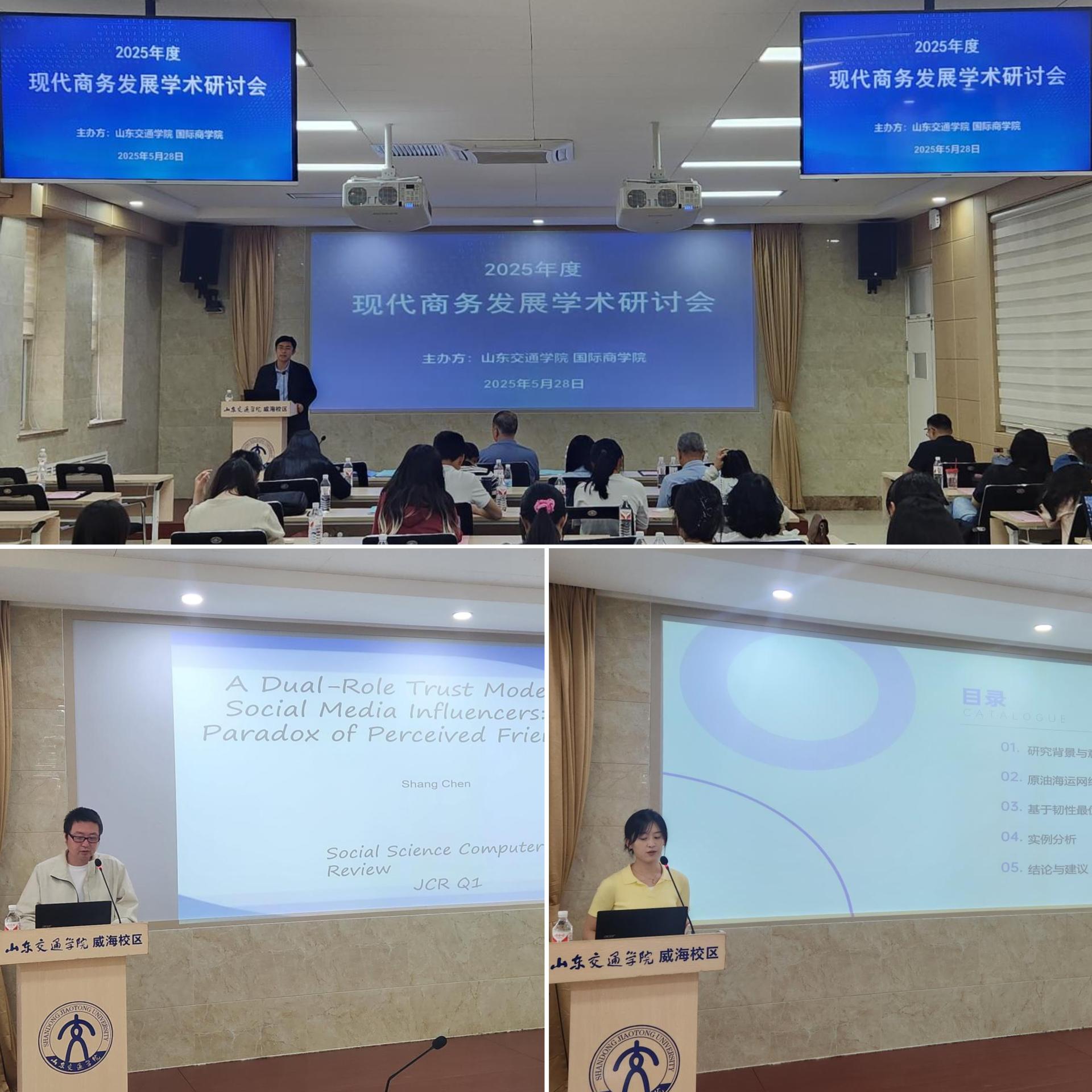 近日,由我校国际商学院主办的2025年度现代商务发展学术研讨会在威海校区明德楼第一报告厅举行。国际商学院党委书记刘佳军参加会议。国际商学院院长孙龙主持会议。