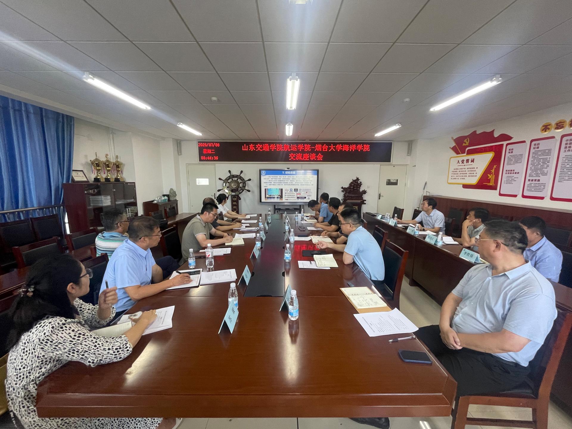 近日,烟台大学海洋学院院长刘焕卫一行来我校航运学院交流座谈。我校航运学院党委书记陈海泳、院长张强参加会议。