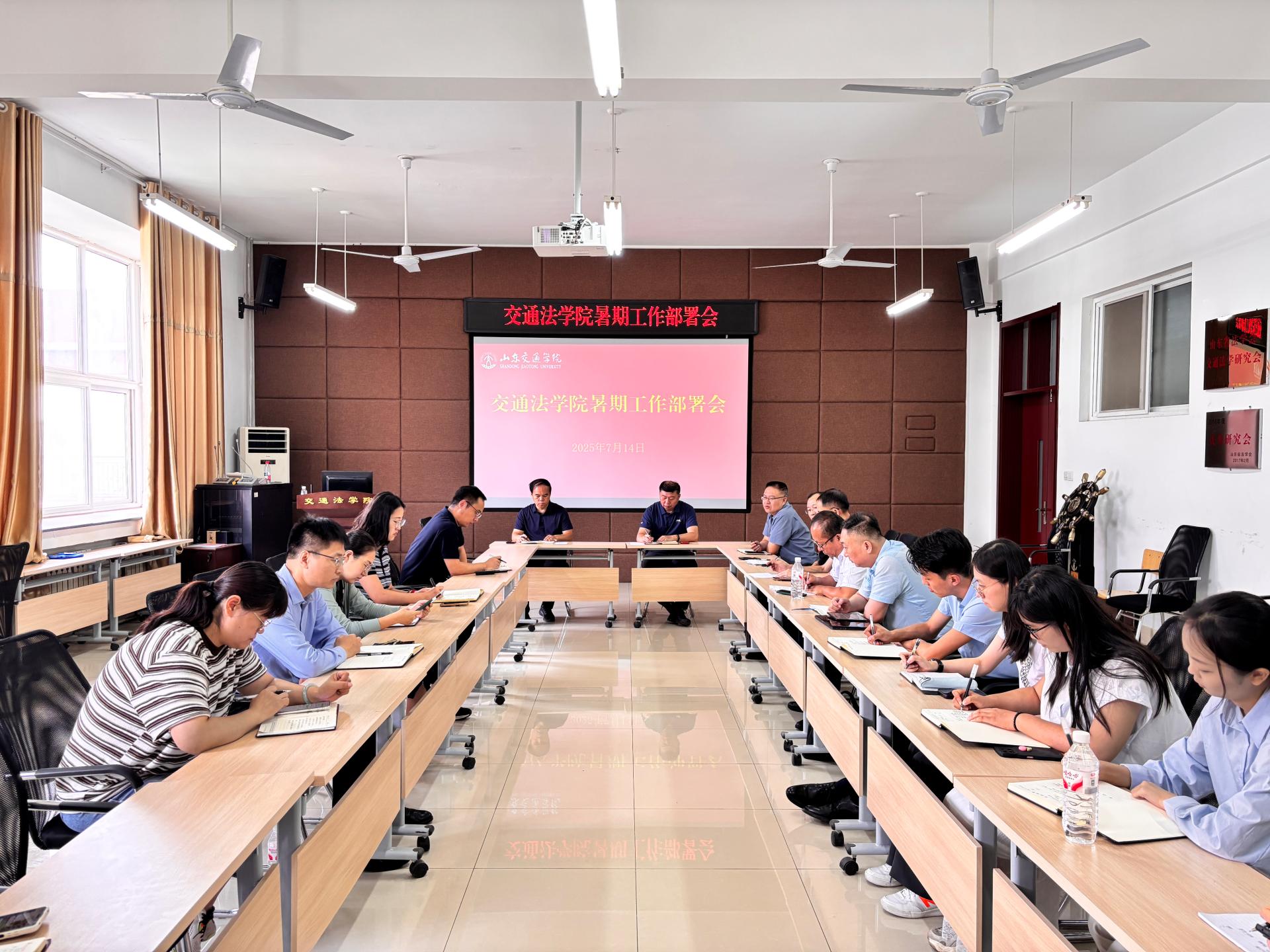 交通法学院召开暑期工作部署与教师能力提升培训会。会议共分为两个环节,在暑期工作部署会上,学院党委领导班子从教学科研、人才培养、学科建设、迎评促建、安全稳定等方面对暑期重点工作进行安排;在教师能力提升培训会上,学院院长范冠峰强调,全体教师要深化对岗位职责的理解,持续提升专业能力与教学水平,为推动学院高质量发展贡献力量。学院副院长张志文讲解了第四次岗位聘用聘期考核的具体指标和职称年度评聘相关政策,帮助教师明确努力方向、厘清发展路径。学院教师代表结合国际化课程建设培训经历分享心得体会。