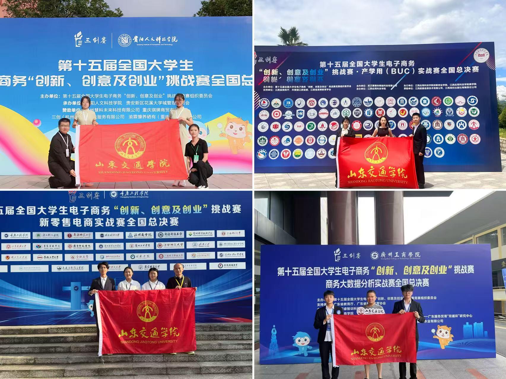 其中,经济与管理学院“宜大皖饭队”(参赛学生:孔凯歌、吕奂瑾、许浩然、司忻平、唐德旋,指导教师:单成巍、李迎赫)获乡村振兴实战赛全国二等奖;“交通大队”(参赛学生:胡海莹、解雯迪、丁华宇、万子恒、卜德文,指导教师:徐伟、许冰、孟凡兴、军鹏)获产学用(BUC)实战赛全国二等奖;“与创行队”(参赛学生:杨衡、赵鹏博、李海宁、葛小涵、谭源源,指导教师:张雪军、单译萱、杨建军、咸志远)获新零售电商实战赛全国二等奖;“竹韵织梦人队”(参赛学生:孙雨彤、刘雅静、张方旭、王龙雨、王超群,指导教师:徐伟、聂云霞、王旭升、李先夫)获常规赛道全国二等奖。国际商学院“山交大一队”(参赛学生:方俊波、孙靖先、李恒毅、齐振凯、马润泽,指导教师:刘镒铖、钟安原)获商务大数据实战赛全国二等奖。