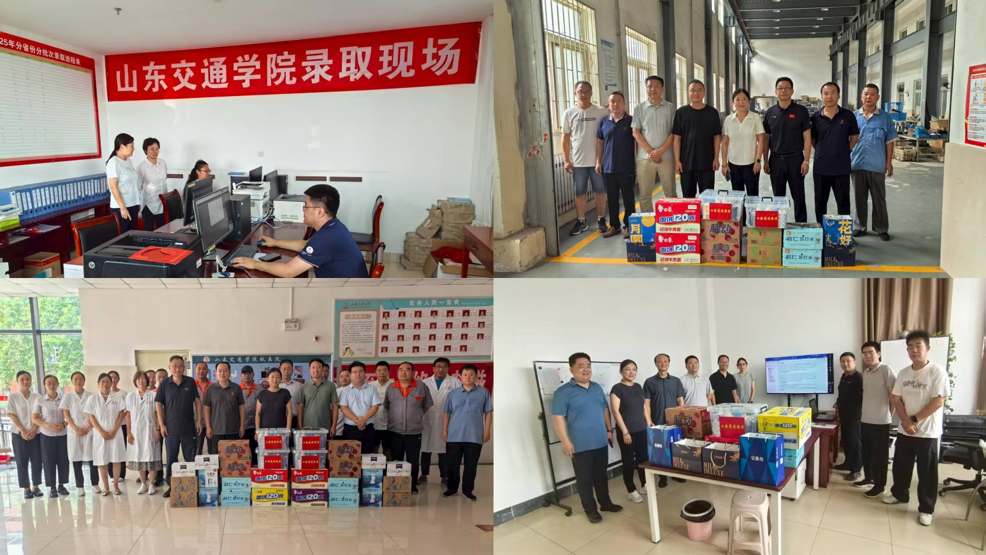 学校工会联合部分基层工会先后来到学校招生就业处招生录取现场,交通基础设施建设工程研究中心、交通司法鉴定中心、机动车检测实验中心、机动车驾驶培训中心、机械加工实验中心、后勤管理处、安全管理处等单位(部门),以及交通土建工程学院汇智交科发展中心、隧道与地下工程灾害高效防控团队等科研团队,看望慰问了在高温酷暑中辛勤工作、潜心科研的教职员工,为他们送去了防暑降温物品。