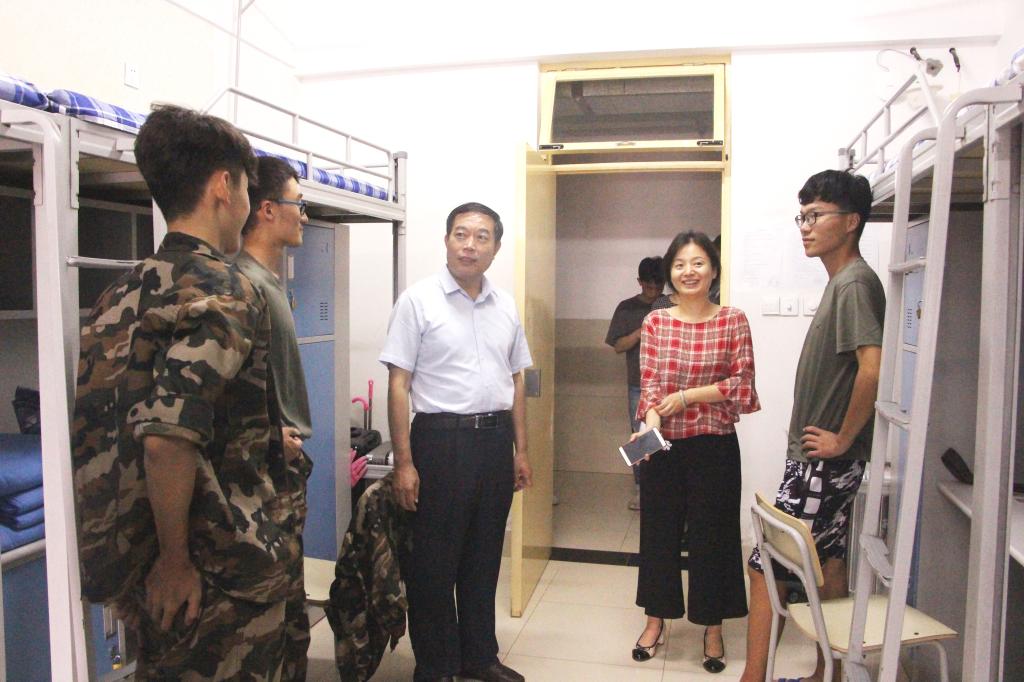 汽车工程学院在军训期间学开展“跨进公寓门,走进学生心”活动。今年,汽车工程学院共迎来546名新生,学院领导、新生辅导员利用中午、晚上的时间数次走访新生公寓,详细询问大家到校后的感受,尤其关注省外、少数民族学生在饮食、生活习惯等方面的适应情况,鼓励大家以积极心态迎接大学生活,并且聆听了学生讲述的军训小故事,拉近师生距离。
