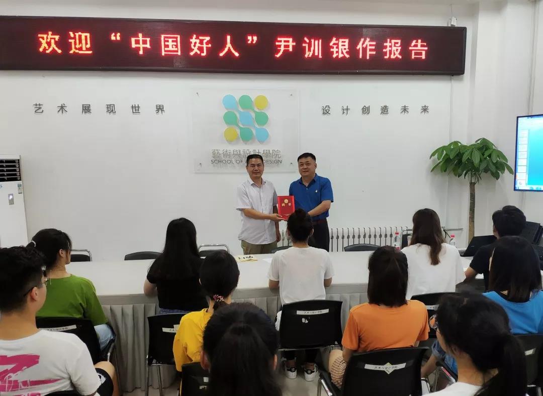为加强学生综合素质培养,将学生日常生活、行为与省级校园文明创建相结合,6月28日上午,艺术与设计学院在长清校区工程中心会议室举行“中国好人”尹训银报告会,学院学生党员与主要学生干部聆听了报告。报告会由艺术与设计学院党总支书记林源主持。