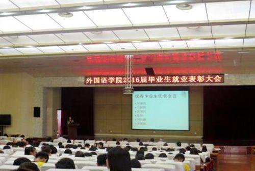 6月15日下午,外国语学院在图书馆报告厅召开了2016届毕业生就业表彰大会。山东国立经济技术合作有限公司董事长侯永智,济南创通教育咨询有限公司总经理张奇,山东海纳思国际货运代理有限公司副总经理韩梅等就业奖助学金赞助单位负责人应邀出席。外国语学院领导班子全体成员出席大会。 会上,外国语学院负责同志宣读了《关于表彰2016届考研出国就业奖学金获得者的有关通报》。张奇为“睿联”考研奖学金获得者颁奖;侯永智为“国立”出国奖学金获得者颁奖;韩梅为“新权”就业奖学金获得者颁奖。共发放奖助学金合计29600元。获奖学生代表罗涵雨等6名同学发言,向13、14、15级学生传授分享了自己的学习经验。外国语学院分党委负责同志做总结发言,对获奖学生表示了祝贺,对各位毕业学生表达了衷心的祝福。 据悉,外国语学院2016届毕业生在就业方面成绩显著,有10名同学出国留学或学习,14名同学考上了包括复旦大学、四川大学、中国人民大学等知名学府省委研究生,100名同学正式签约,学院的就业率达到90%以上。 外国语学院2012级学生代表,2013级、2014级、2015级全体学生参加了大会。(外国语学院 文图/王婷玉)