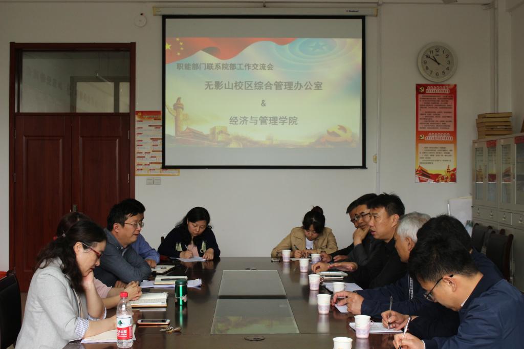 为认真贯彻落实职能部门联系院部制度,不断创新党支部结对共建形式,切实改进工作作风,增强主动服务师生意识,4月24日上午,无影山校区综合管理办公室与经济与管理学院开展工作座谈交流活动。