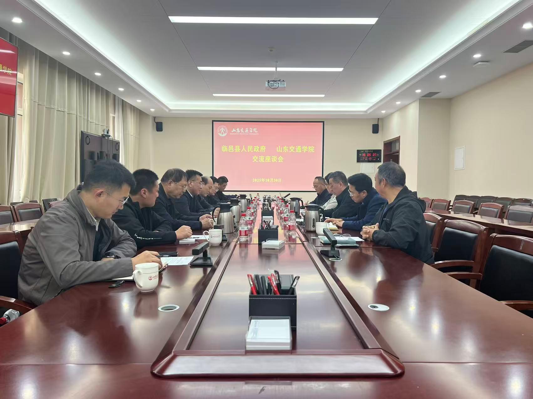 于翊广对赵明刚一行到来表示热烈欢迎,详细介绍了学校历史沿革、人才培养、学科建设、合作发展等方面情况。他指出,此次来访既是对学校工作的关心支持,也是双方深化合作、共谋发展的重要契机,希望双方在专业共建、人才共育、科研共推、成果共享、服务共促等方面构建长效合作机制,共同开启校地合作新篇章。赵明刚对学校的热情接待表示感谢,介绍了临邑县的历史底蕴、区位优势、人才需求、主导产业布局、科技创新载体建设等情况。他希望,与学校携手并进,在技术对接、企业帮扶、专业人才培养、产业工人培训等领域深化合作,共同为区域经济社会及交通事业发展贡献力量。