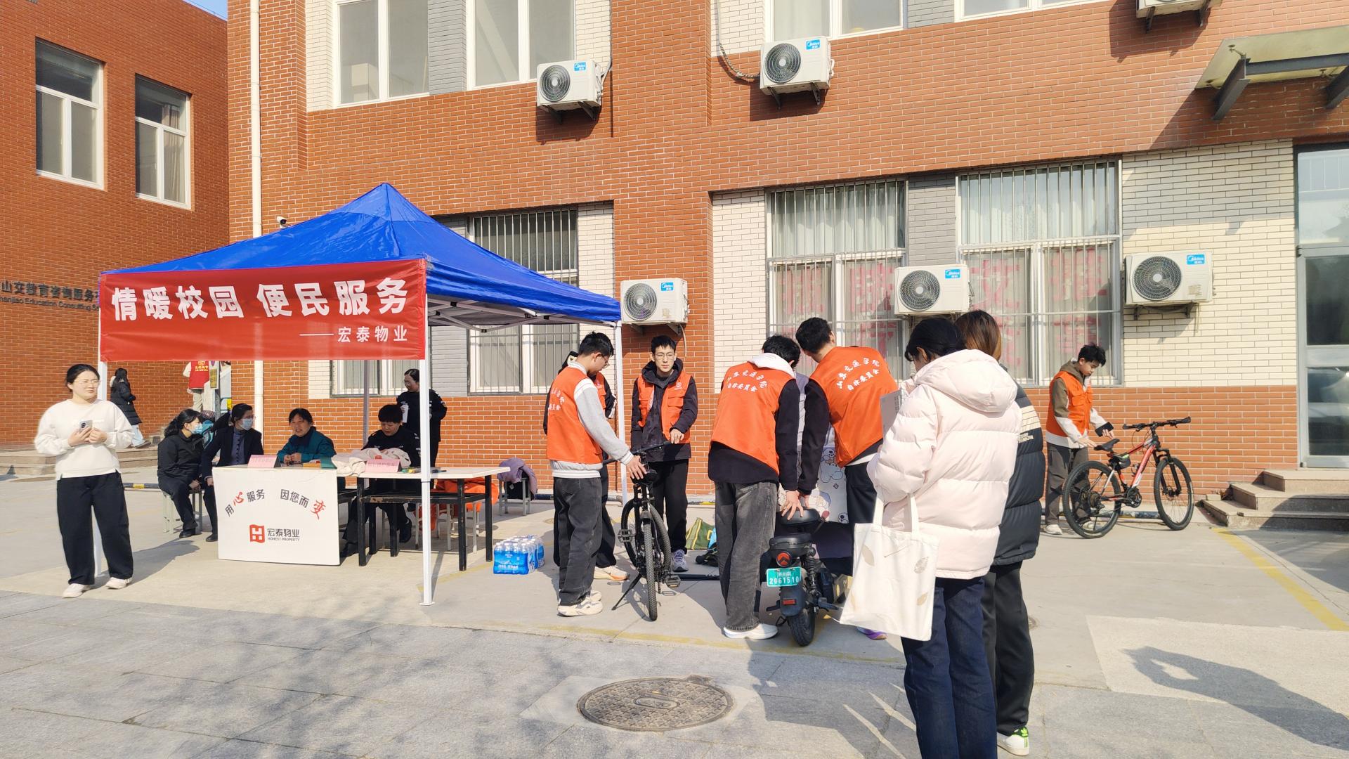 3月20日下午,学生工作处(人民武装部)携手宏泰物业在5号学生公寓东侧小广场开展便民志愿服务活动。