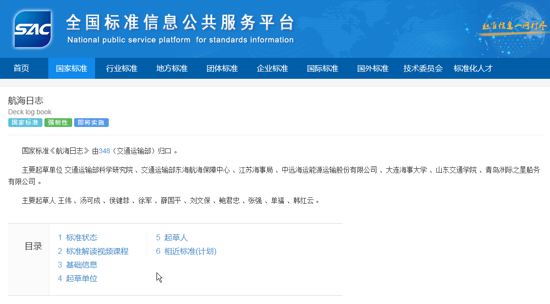近日,由交通运输部科学研究院、江苏海事局、大连海事大学、山东交通学院等7家单位共同起草的强制性国家标准GB 18093—2025《航海日志》将替代2000年版,于5月1日正式施行。我校航运学院教师张强参与了该标准的起草工作。