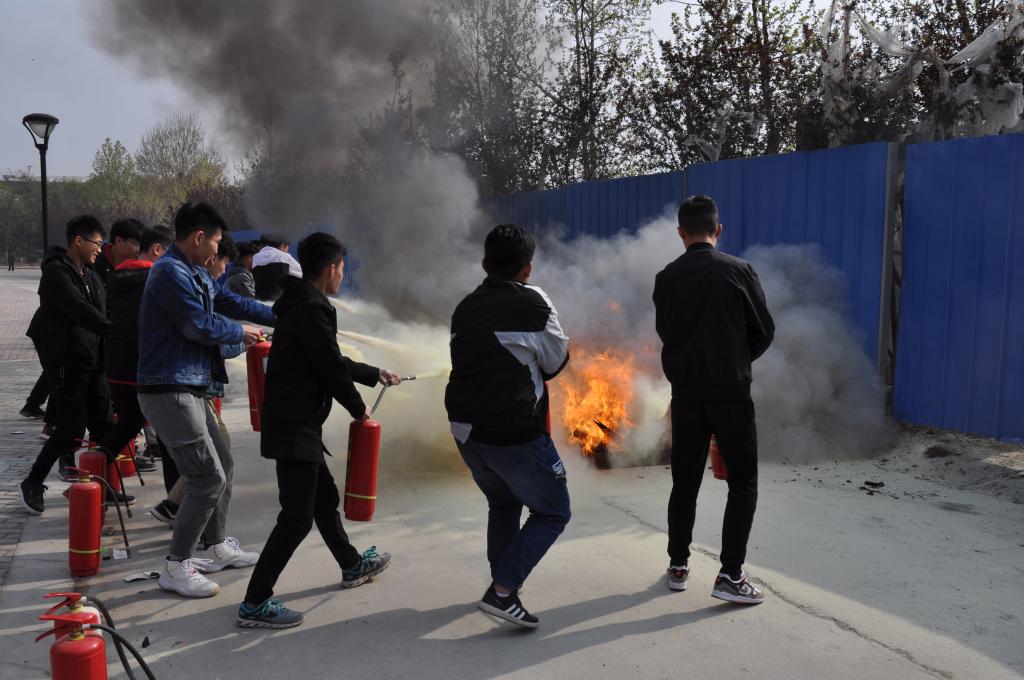 活动中,保卫处工作人员还带领同学们学习了灭火器的使用方法。
