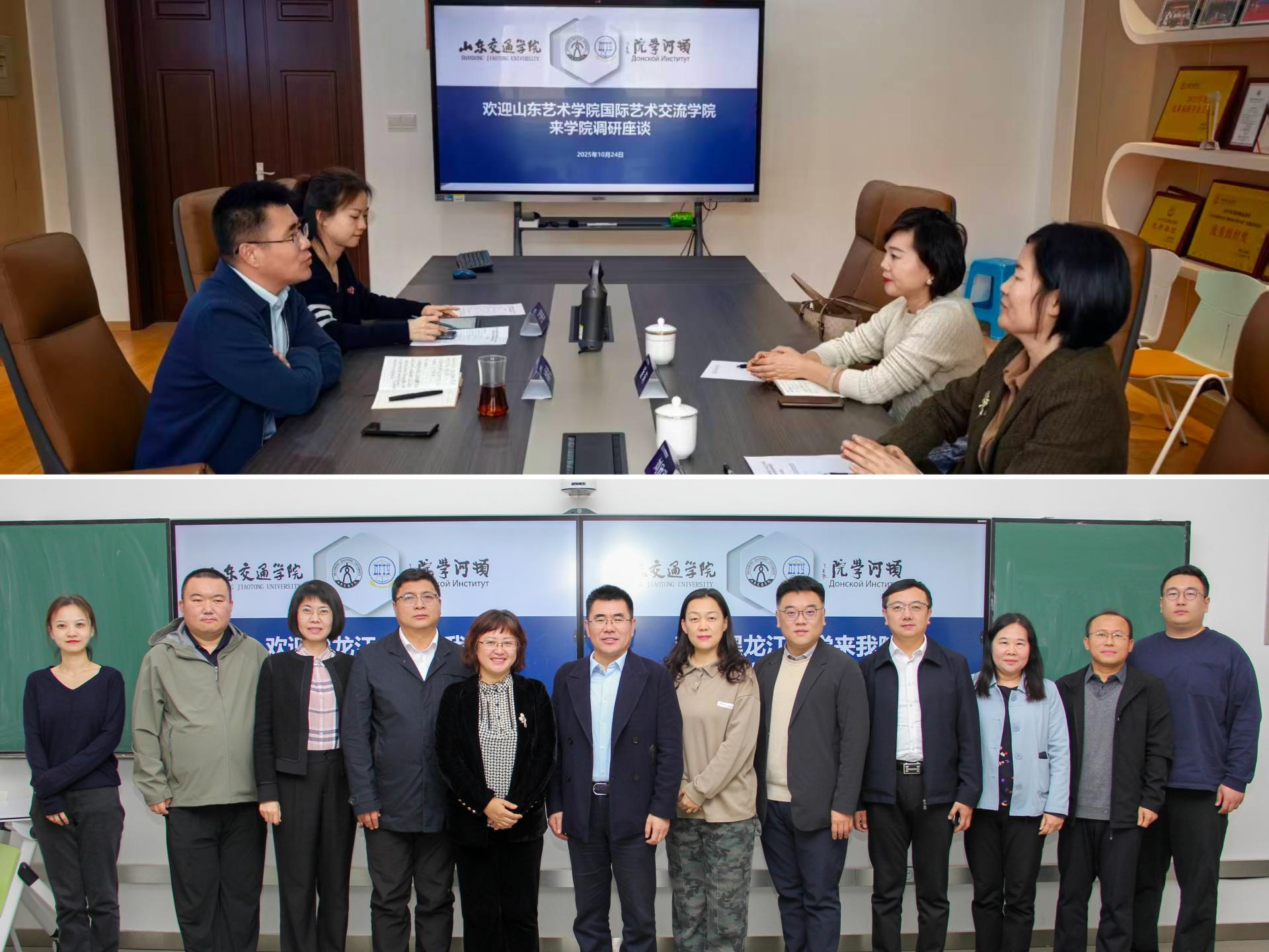 近日,山东艺术学院国际艺术交流学院、黑龙江大学中俄学院来我校顿河学院调研交流。顿河学院院长刘春光参加活动。