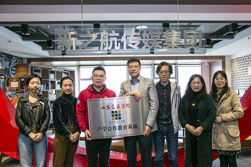 4月25日上午,艺术与设计学院院长孙龙杰一行赴新之航传媒集团,举行双方共建“产学合作教育基地”的签约挂牌仪式。新之航传媒集团副董事长于涛、人力资源总监迟小玥、平面设计公司副总经理韩苗参加活动。