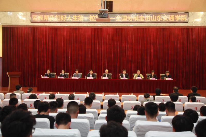 在“五一”国际劳动节来临之际,为进一步贯彻落实全国教育大会的精神,坚持立德树人根本任务,大力弘扬劳模精神、劳动精神,引导拔节孕穗期的青年学子崇敬劳模、学习劳模,用新时代劳模精神感染和滋养校园文明,4月24日下午,山东交通学院联合山东省交通运输集团有限公司、济南市公共交通总公司联合于在长清校区学术报告厅举办了“劳模帮我扣好人生第一粒扣子——全国劳模走进山东交通学院活动”,用全国劳模的真情、真事、真话来感染、感动、感化学生,为山东交通学院青年学子上一场生动的“劳动教育课”。