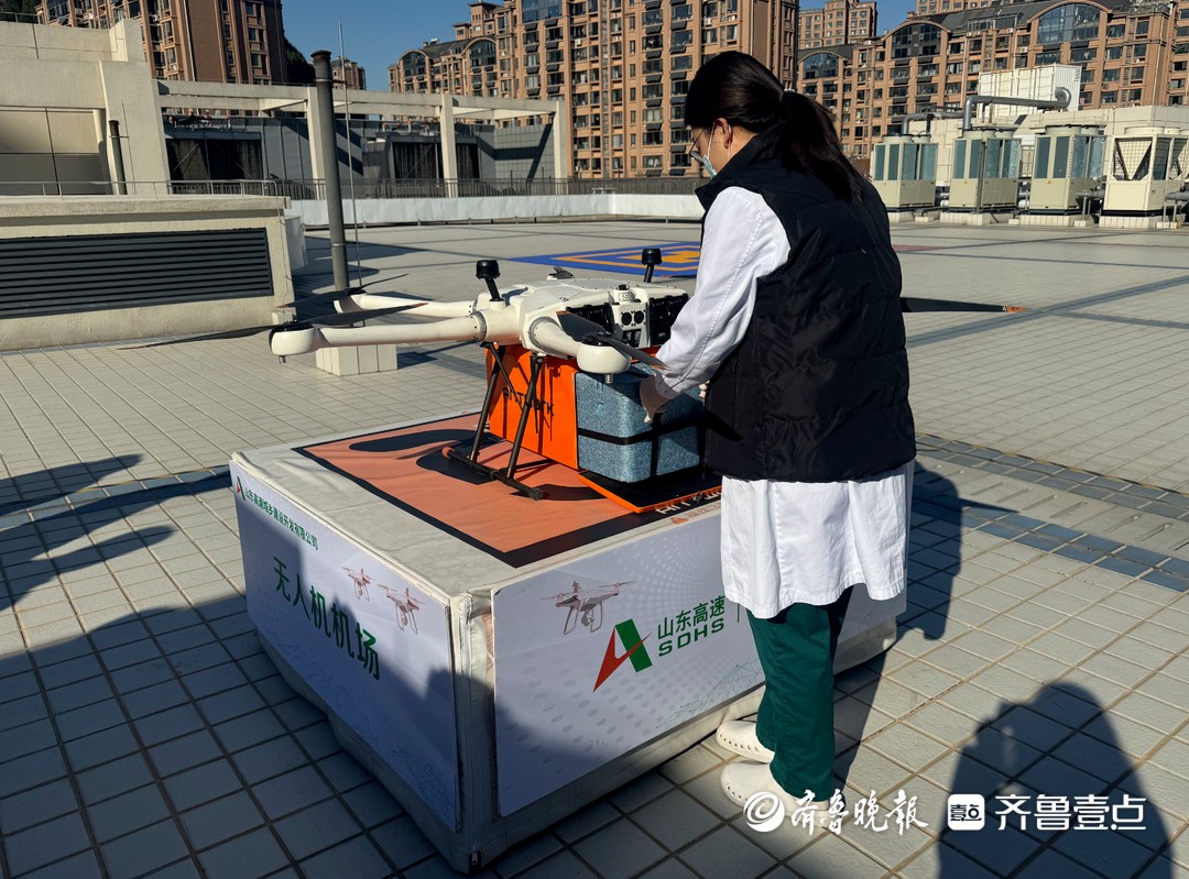 与此同时,山东大学齐鲁医院也借助无人机开辟出一条“空中绿色生命通道”。从山东省血液中心直达医院停机坪,全程点对点精准配送仅用时5分钟,实现了从传统“地面急救”到“空地一体”重症救治体系的升级,为生命救援注入强劲的“低空加速度”。