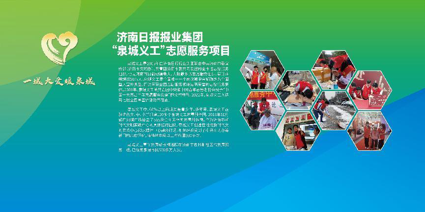 “一城大爱暖泉城——泉城志愿者,哪里需要哪有我”这是50万泉城义工弘扬志愿服务精神的庄严承诺。用爱心传承文明,用真情奉献社会,争做新时代文明实践志愿服务精神的践行者,泉城义工时刻准备着,为济南市全国文明典范城市的创建贡献力量。