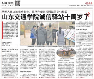 他说,直到自己成为山东交通学院的一名新生,有一天站在诚信驿站前,看学哥学姐们自然地走进去,取了自己需要的文具,自己付款,才相信它是真实的存在。