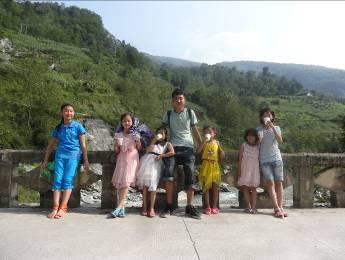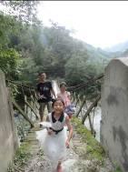 经过路上的一个吊桥 和孩子们在贯岭的桥上歇息