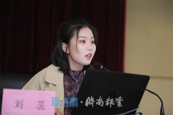 在会议第二阶段,济南学雷锋志愿者、长清百姓宣讲团成员、刘成德孙女,现在山东师范大学新闻与传媒学院读书的刘蕊作题为《爷爷好榜样,走好成德路》报告。