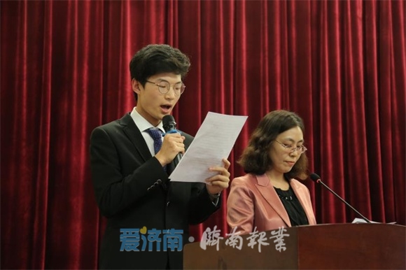 动员大会上,师德标兵代表、马克思主义学院孙晓华博士和学生代表、校学生会主席金融161班张程共同宣读省级文明校园创建倡议书。