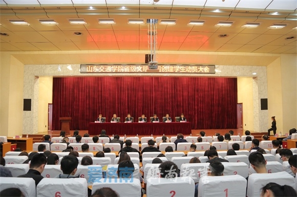 山东交通学院党委副书记唐勇在讲话中指出,创建省级文明校园不仅是一项权威性、综合性的荣誉,是一块非常过硬的“金字招牌”,更是一件凝聚人心、汇聚力量、振奋精神的大事,对于提升学院综合办学实力、成功申报硕士授权单位和实现全体交院人的“交大梦”具有非凡的意义。要充分认识创建省级文明校园的重要意义,切实增强创建工作的紧迫感和责任感,广泛动员,凝聚合力,在全校大学生中迅速掀起“做文明学生 创文明校园”的活动热潮。要严格规范自身行为,弘扬交院优良传统,让文明之风溢满校园,每个大学生都成为文明校园创建的靓丽名片。