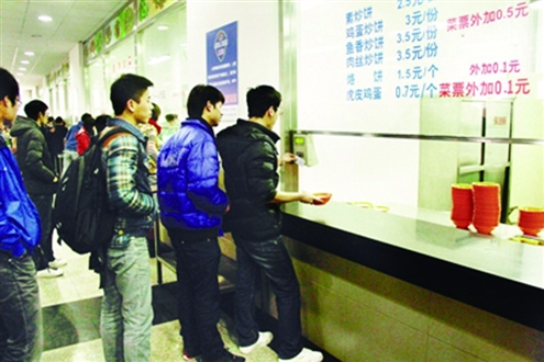 记者困惑的是,学生按需取餐,刷卡机怎样才能准确刷卡呢?山东交通学院生活服务中心主任刘清来道破“天机”:早餐简单,汤类、鸡蛋、小咸菜价格固定,工作人员把要卖的东西事先盛好,并在刷卡机上设置定额,比如鸡蛋6毛一个、小咸菜3毛一份、稀饭5毛到6毛一碗,分别在四个刷卡机上设定好,学生只需要按照自己所取食物类别,然后到相应设定卡值的刷卡机前刷卡就可以了。