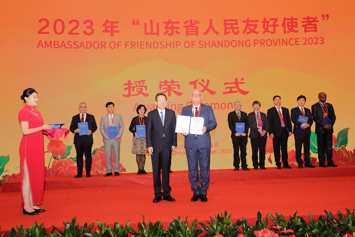 据悉,“山东省人民友好使者”称号由山东省人民对外友好协会设立,是授予长期坚持对华友好,在山东省和世界各国人民的友好交流与合作中做出突出贡献,并在山东和本国具有较高声誉或影响的外国友人。此前,山东交通学院顿河学院副院长谢尔盖·米歇利科夫曾获2022年“泉城友谊奖”。
