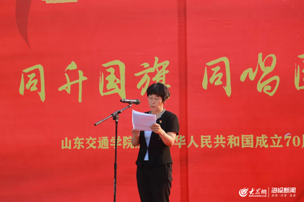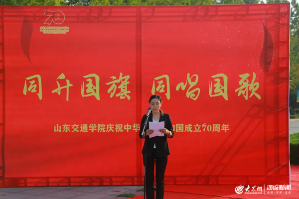 大众网教育·海报新闻讯9月29日,山东交通学院举办“同升国旗,同唱国歌”主题教育活动,共庆祖国华诞,共享伟大荣光。学校领导孙秀丽、陈松岩、唐勇、徐晓红、李贞涛、孔祥云、范玉斌、孟庆旭出席活动。活动由团委书记周颜玲主持。