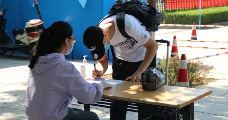 学校后勤、保卫及辅导员参与健康检测工作,运用生物识别、红外热成像测温等技术手段,为复学学生进行体温监测、身份登记等。宿舍门前,学生们接受公寓管理人员健康检测及登记工作,并由辅导员陪同进入宿舍。省外返回学生进入暂时隔离区等待核酸检测。