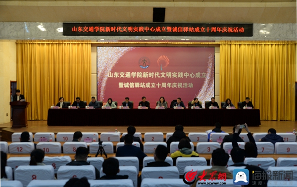 12月11日,在山东交通学院新时代文明实践中心成立暨诚信驿站成立十周年庆祝活动大会上,济南市委宣传部副部长曹湧希望山东交通学院继续扎实推进新时代文明实践中心各项工作,擦亮诚信驿站等志愿服务品牌,向社会输送交院文明力量。