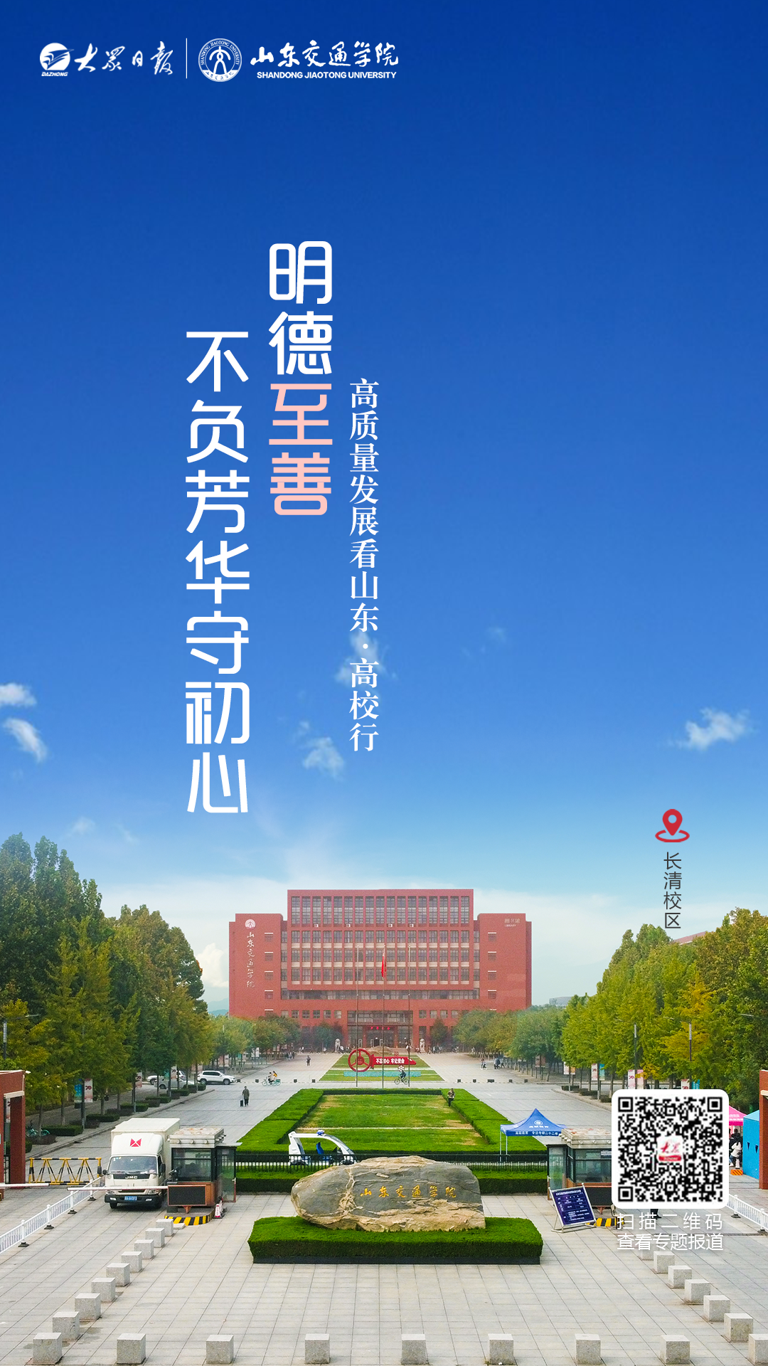 今天,记者带你打卡山东交通学院。山东交通学院是一所以培养综合交通人才为办学特色的全日制普通本科高校,是山东省高等教育应用型人才培养特色名校立项建设单位,山东省与交通运输部共建高校。系列海报新鲜出炉,快来收藏!